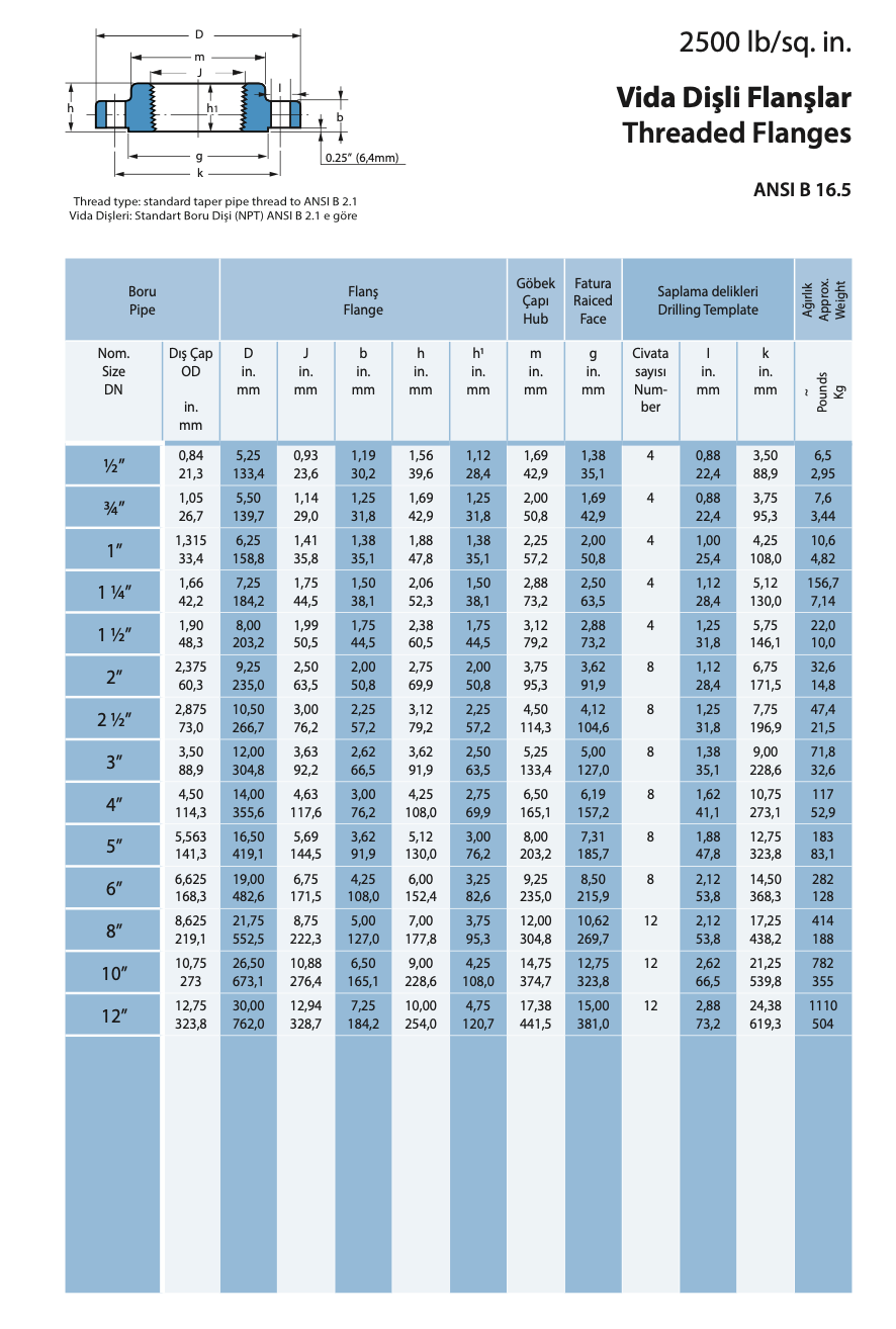 2500LB Dişli Flanş