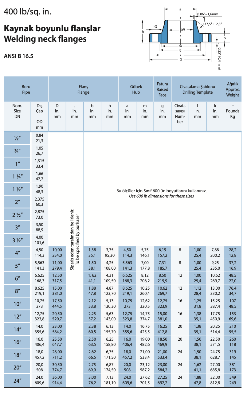 Furkan Torna kalitesiyle üretilen Kaynak Boyunlu Flanşlar, yüksek basınç ve ekstrem sıcaklıkların olduğu zorlu boru hatları için tasarlanmıştır. Uzun konik boyun yapısı sayesinde gerilmeyi boruya aktararak sistem güvenliğini maksimuma çıkarır.